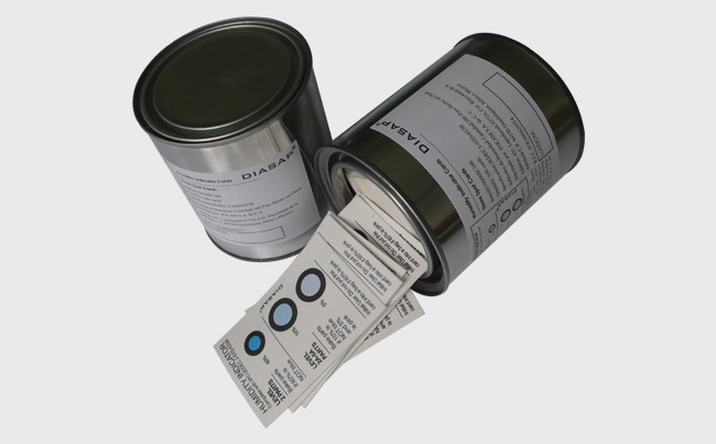 濕度指示卡主要用于半導體、線路板(PCB)、軍需品、光學儀器、醫藥、倉儲及其他包裝等。成品為可視卡片,卡片中每個圓點分別對應一個濕度值,隨著相對濕度的變化,圓點通常由藍色逐漸變成粉紅色(含鈷濕度卡),或者由棕色變成淺藍色(無鈷濕度卡),由此可以確定環境的相對濕度值,以幫確定干燥劑是否需要更換,濕度卡可根據客戶需求定制。可與鋁箔袋,干燥劑等配套使用。